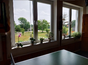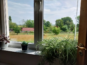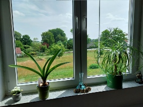 Udsigten fra guldesal/motionsrum mod henholdsvis nordøst, øst og sydøst